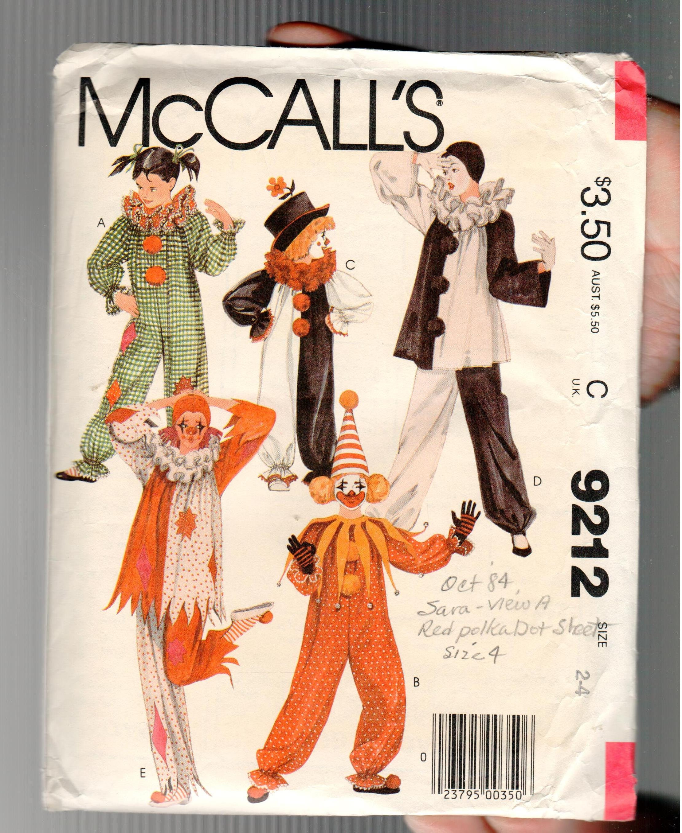Mccalls 9212 Sewing Pattern Boys Girls Clown Costumes 5 Styles Size 2 4 Used On Ebid United Kingdom 42278034