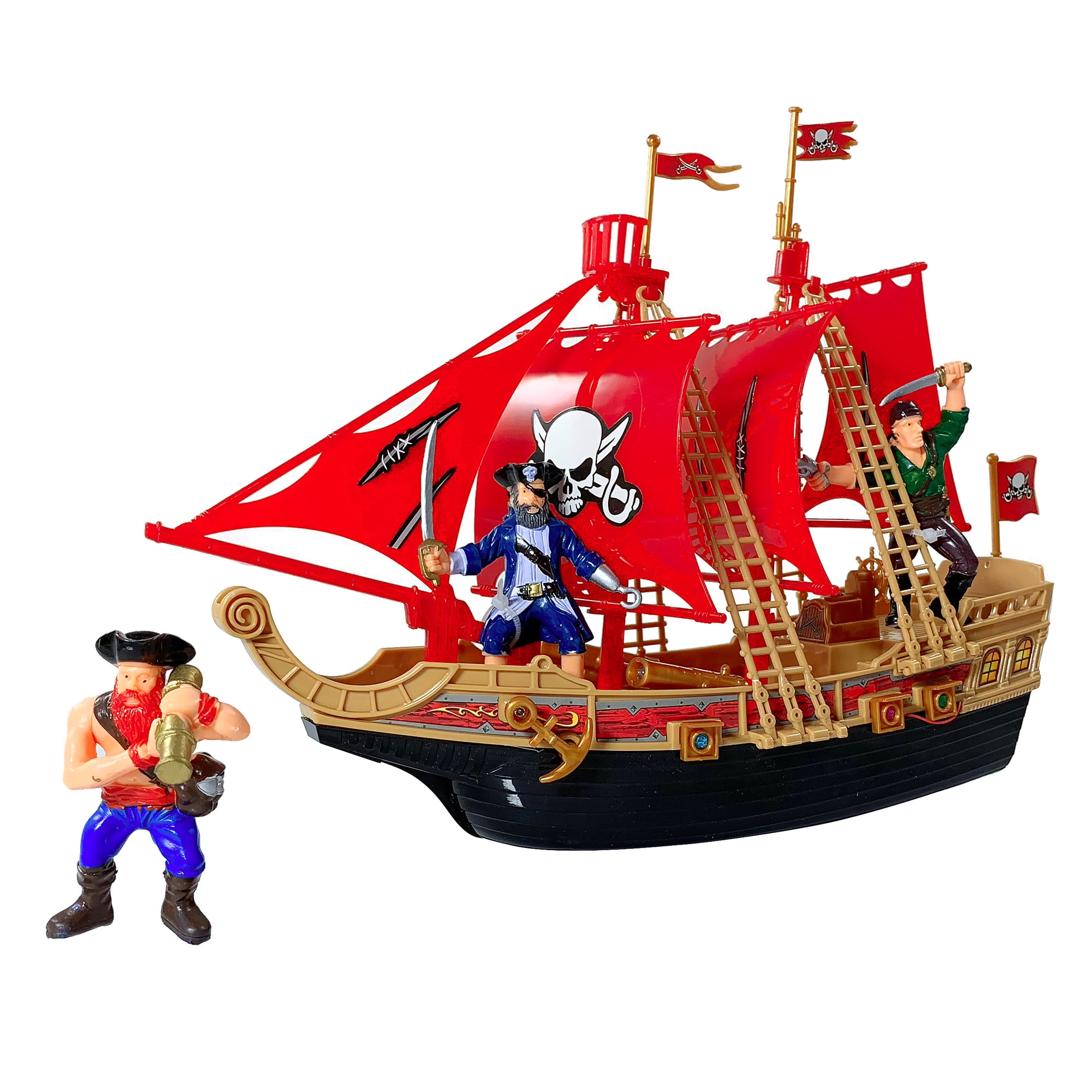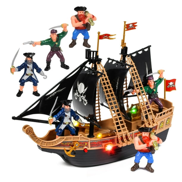 Kidplokio Pirate Ship Ocean Adventure Playset With Lights Sounds Action Figures Black Boys Ages 3 Walmart Com