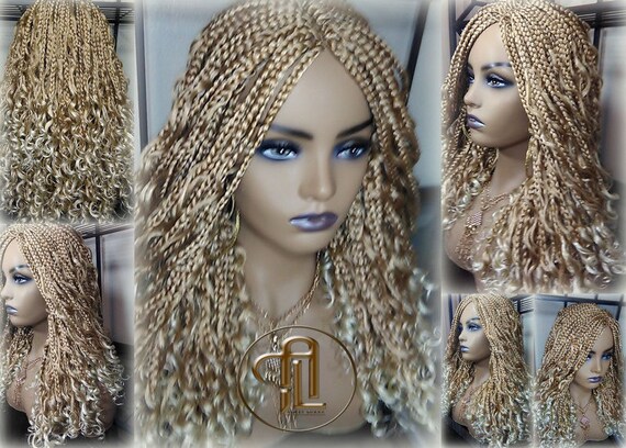 14 In Box Braid Boho Short Curly Wig Blonde 27 613 Mix Ombre Etsy